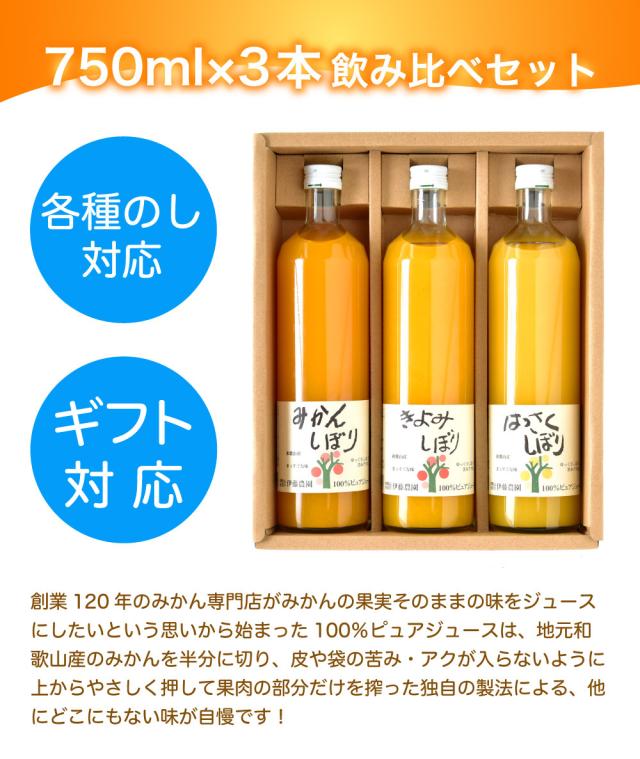 みかんジュース ストレート 750ml 3本 和歌山 無添加 果汁100% 飲み比べ ジュース 大容量 ふるさと納税でも好評 結婚内祝 出産内祝 誕生日 快気祝 お返し お取り寄せ