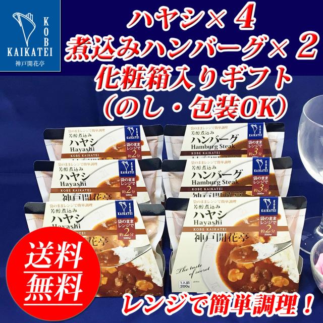 レトルト食品 詰め合わせ ハヤシ ハンバーグ 6食入 ギフト レトルト 惣菜 おかず 神戸開花亭 送料無料 一部地域は追加送料あり 母の日 父の日 お中元 お歳暮 内祝い 出産 快気祝い お年賀 福袋 高級 温めるだけ レンジ対応 湯煎 福袋 ポイント消化