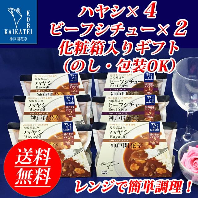 レトルト食品 詰め合わせ ハヤシ ビーフ シチュー 6食入 ギフト レトルト 惣菜 おかず 神戸開花亭 送料無料 母の日 父の日 お中元 お歳暮 内祝い 出産 快気祝い お年賀 福袋 高級 温めるだけ レンジ対応 湯煎 福袋 ポイント消化