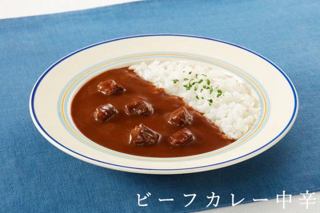 ・ビーフカレー中辛[牛肉(オーストラリア)、ソテーオニオン(玉ねぎ、食用油脂)、チキンエキス、小麦粉、食用油脂、カレールー、砂糖混合異性化液糖、