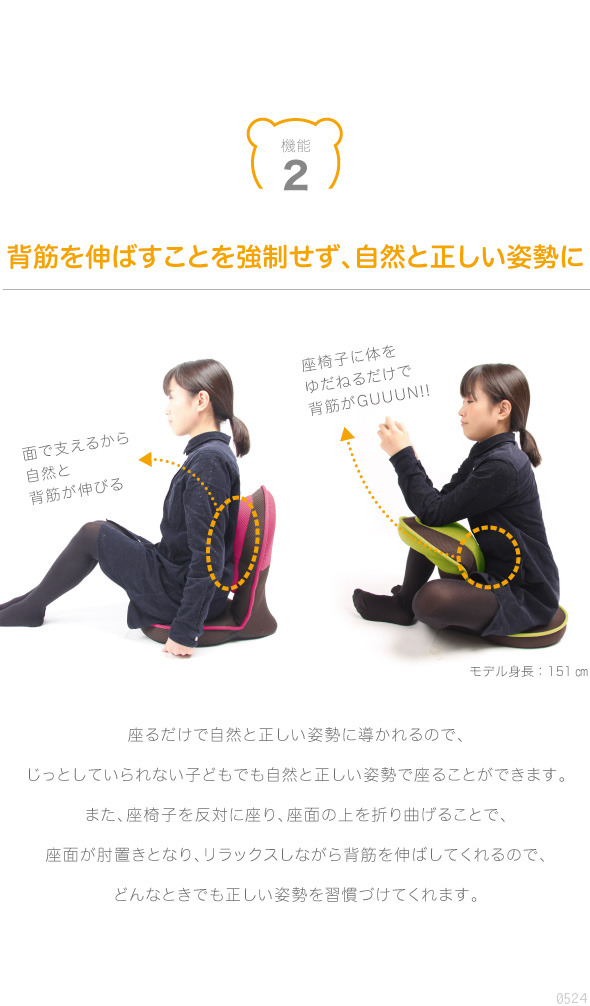 【送料無料】大人気GUUUN座椅子シリーズにコンパクトタイプ登場!一回り小さくなっても、おなじみの機能のまま!肉厚クッション+2つの14段階リクライニング!背もたれのリクライニングはもちろん背中クッションがなんと90度に曲がっちゃうんです。椅子の上でも姿勢がよくなりやる気アップ!椅子の上でも使用できます。無理せず良い姿勢が保てるので、こどものやる気アップにもつながります。矯正せず、自然と正しい姿勢に!座るだけで自然と正しい姿勢に導かれるので、じっとしていられない子どもでも自然と正しい姿勢で座ることができます。読書やゲームのリラックスシーンにも!ついついソファなどでリラックスしているときなどは、姿勢が悪くなりがち。ゲームをするときや、漫画、読書をするときにもぴったり。※お子様にもご使用頂ける仕様となっております。