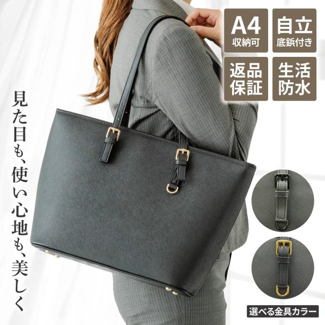 | トートバッグ ビジネスバッグ リクルートバッグ A4サイズ対応 レディース 就活 自立 防水 天面ファスナー 底鋲 大容量 仕分け PUレザー |