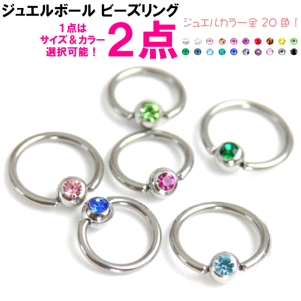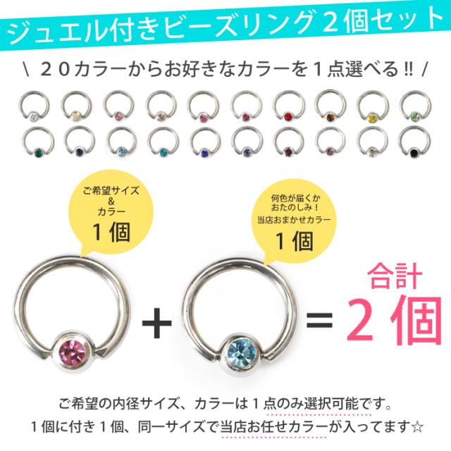 【メール便対応】2個セット ビーズリング ジュエル付 14G はめ込み式 ステンレス316L 軟骨 トラガス キラキラ ラインストーン CBR BCR ボディーピアス 定番 ゴージャス┃