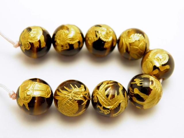 タイガーアイ(金入り) 12mm 龍の九匹の子供 龍生九子【セット売り】天然石 パワーストーン