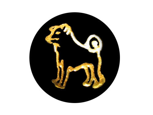 【彫刻ビーズ・彫りビーズ】戌(いぬ)オニキス(金色入り) 【彫刻 一粒売りビーズ】 天然石 パワーストーン