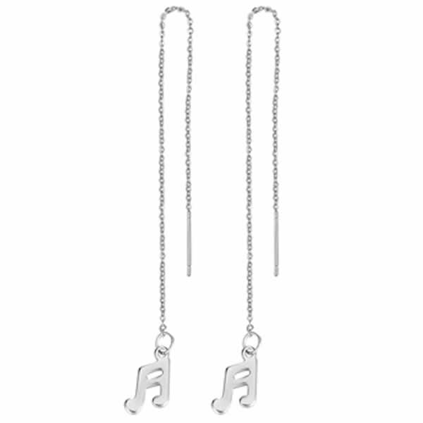 音符のチャームをステンレスチェーンのトップにセットしたアメリカンチェーンピアス。 優雅に揺れるチェーンピアスはドレッシーにもカジュアルにも似合う。全身ステンレスなので安心で丈夫。プレゼントにもおすすめです。 別売りのキャッチを使ってロングピアスにしてもおしゃれ。 (ご購入の際のご注意)・こちらのアメリカンピアスは素材がステンレスとなっており、非常に丈夫にできております。引っ掛けたりいたしますと、お怪我される恐れがございますので、ピアスをご使用の際はご注意ください。万が一お怪我された場合は、お近くの医療機関へご相談くださいませ。当社では一切の責任を負うことができませんことをご了承くださいませ。【スペック】デザインの大きさ:幅 x 高さ:約8mm x 11mmチェーンの長さ:約100mmポストサイズ(チェーンの太さ):約 0.7mm【素材】ステンレス【備考】・表示は1ヶの価格です。(両耳分ご必要な場合は数量2にてご注文ください。)・写真はイメージです。お客様のモニターにより商品の色やイメージが異なる場合があります。・スペックサイズは目安としての参考値です。多少誤差がある場合がございますので予めご了承ください。