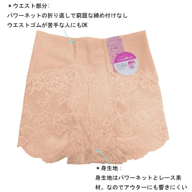 ウエスト部はパワーネット生地を2重に折り返す仕様でおなかを押さえます