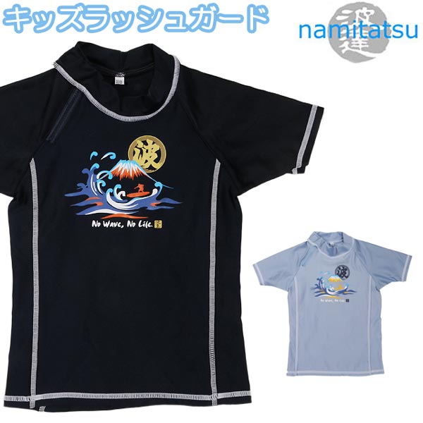 キッズ水着 波達 男の子用半袖ラッシュガード なみたつ 波乗達人 子供用 子ども用 男児 UVカット ジッパー 【メール便可】 No.sw1244
