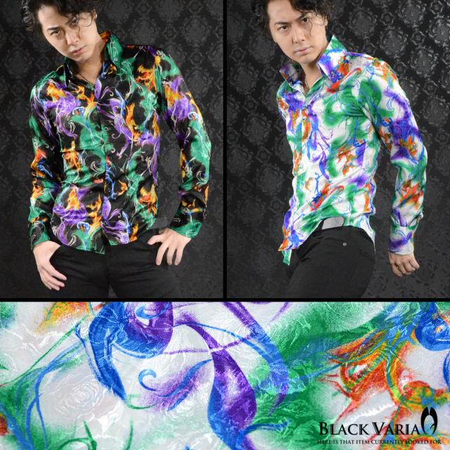 ■キーワード:カラースモーク MADE IN JAPAN 紳士用 男性用 メンズ ワイシャツ Yシャツ カッターシャツ BD シングルカフス ラウンドカフス スリム 細身 ホスト お兄系 モード ドレスシーン ナイトシーン 衣装 ステージ 舞台 ライブ バンド パーティー イベント 休日 国産 総柄 織柄 光 アート スモーク カラフル おしゃれ
