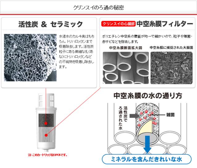 ■ろ材の種類:中空糸膜(ポリエチレン)、活性炭+セラミック