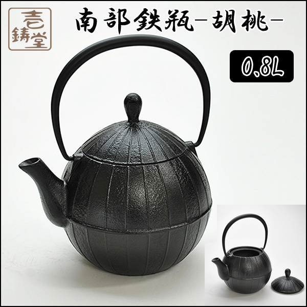 本場岩手産の南部鉄瓶[胡桃(くるみ)0.8L] (南部鉄器 伝統工芸 直火鉄瓶 鉄分補給 ギフト おいしいお茶 コーヒー おすすめ南部鉄瓶 ITCHU-DO 壱鋳堂)