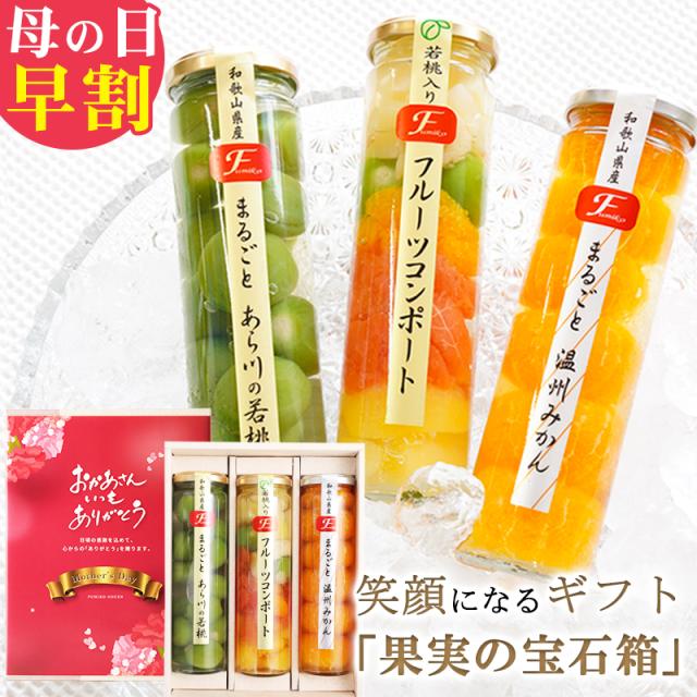 母の日 果実の宝石箱 フルーツコンポート 3本セット(丸ごと温州みかん、フルーツミックスコンポート、若桃) 洋菓子 プレゼント スイーツ ギフト 贈り物 和歌山 送料無料 ふみこ農園 wd mom papa sum kr