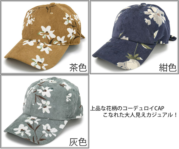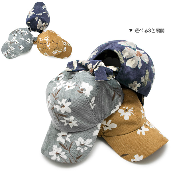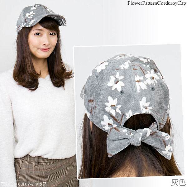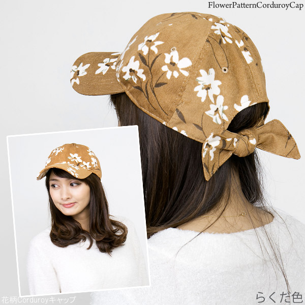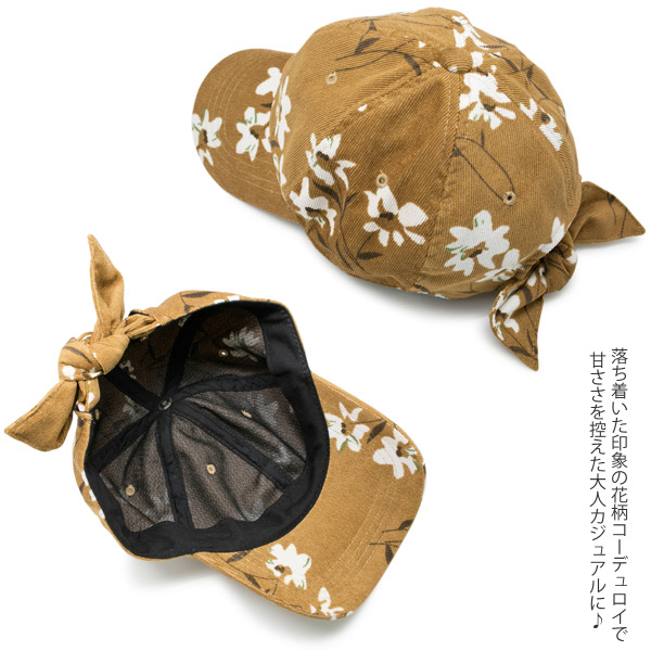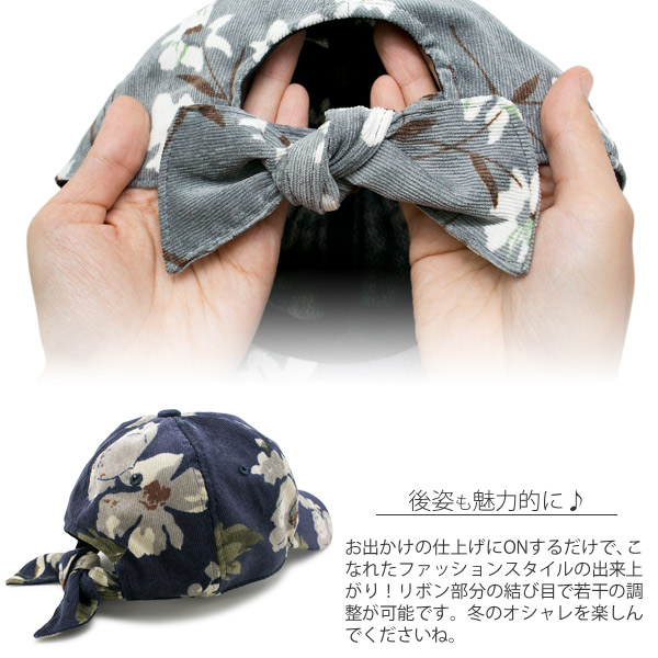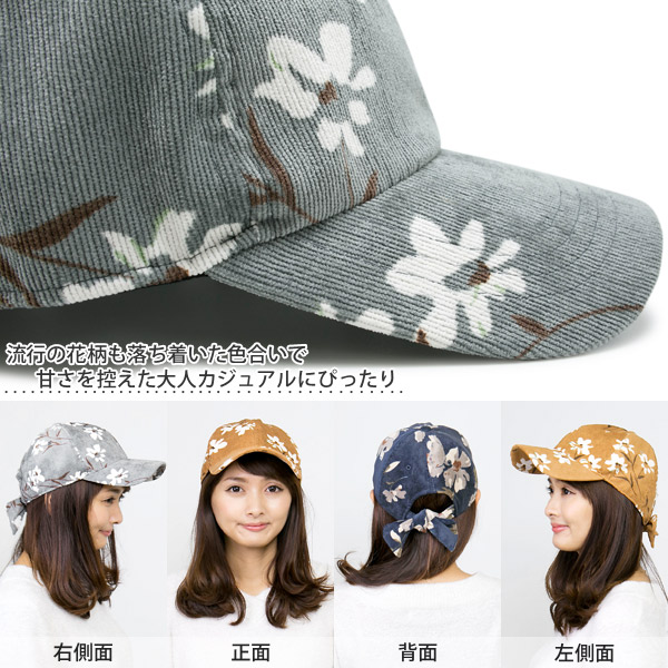 帽子 レディース [メール便可] 花柄 キャップ 秋冬 コーデュロイ リボン ワークキャップ / 花柄Corduroyキャップ[M便 9/8]2