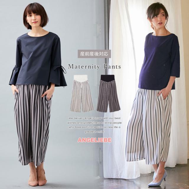 マタニティ パンツ LOVE MIC デシンマルチストライプワイドパンツ マタニティ パンツ ずぼん ズボン ボトムス 妊婦服 マタニティー