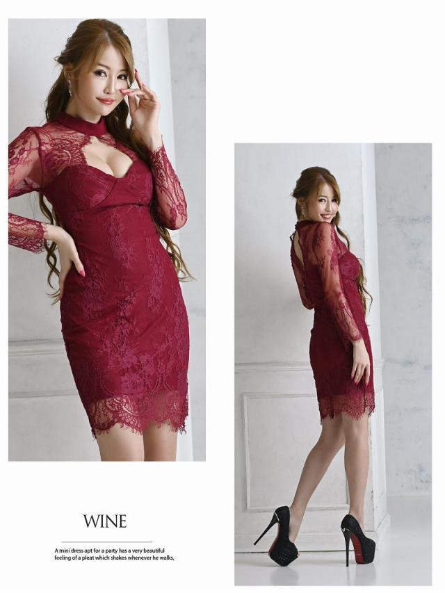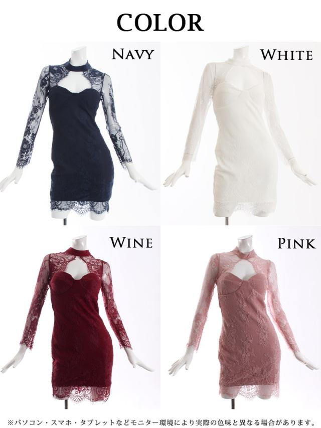 ☆シンプルな単色ドレスも繊細なflowerリバーレースでdressy感溢れる総レースミニドレスはキャバ嬢さん必見♪