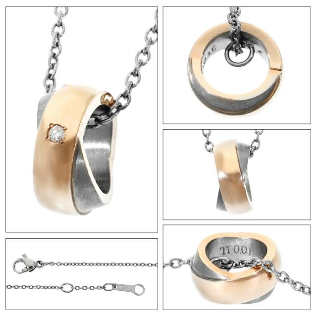 華やかなピンクラインにダイヤモンドを留めたチタン製リングネックレス。