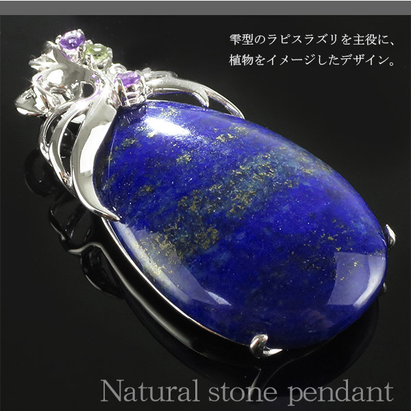 雫型のラピスラズリを主役に、植物をイメージした可愛らしいデザインに仕上げたペンダントトップです。