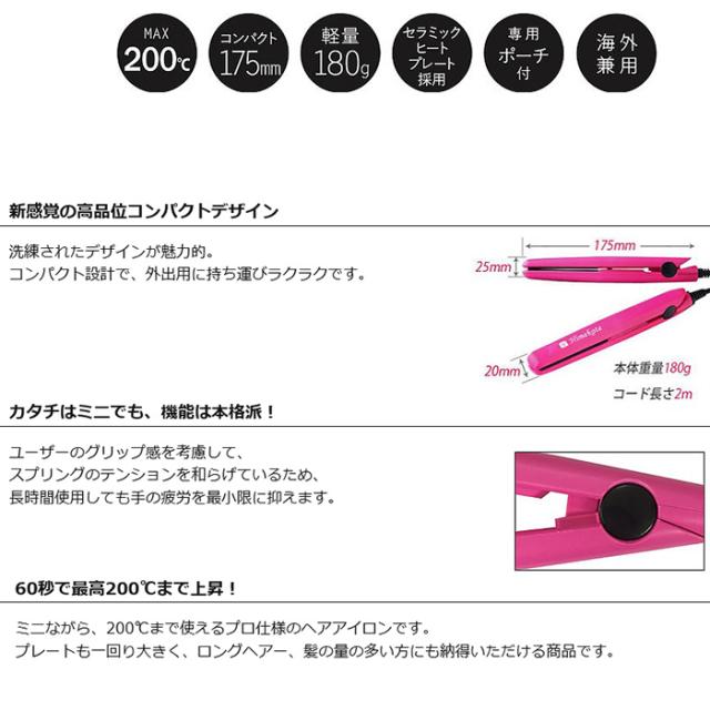 コンパクトミニヘアアイロン ヒメコテプラス ヘアーアイロン Himekote+ 60秒で最高200℃ ストレートヘアアイ