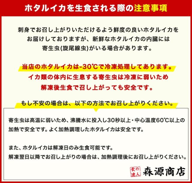 一般的な蛍烏賊は、内臓を取らないと生食で食べられないのですが