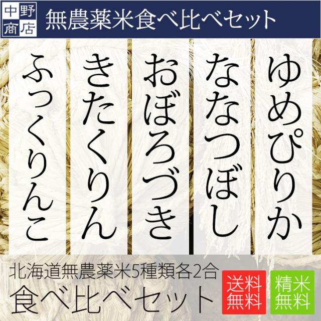北海道産 無農薬米 お試しサイズ 食べ比べセット(ゆめぴりか ななつぼし おぼろづき きたくりん ふっくりんこ)各2合(計10合)