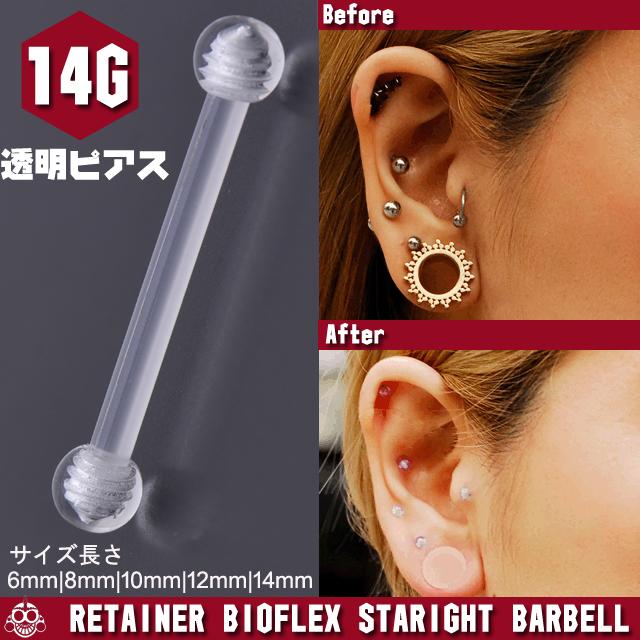 透明ピアス 14g レントゲン MRI 検査ピアス 冠婚葬祭 隠せるピアス シークレットピアス ロブ 軟骨ピアス ボディピアス