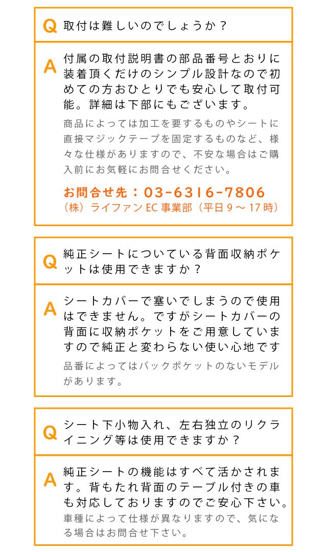 ※ ご購入前に、必ずお車の年式や型式、シート形状、適合等をご確認ください。