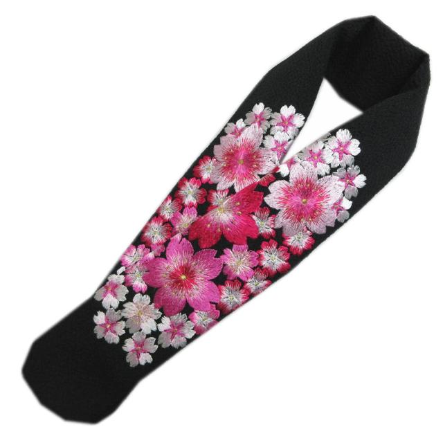 半衿 半襟 刺繍 黒色地金糸入り赤ピンク桜さくら 振袖 成人式 卒業式 袴 着物 女性用 レディース 振袖用 はかま ハカマ きもの