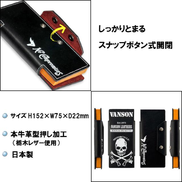 バンソン VANSON プルームテック ケース Ploom TECH 手帳型 栃木レザー 牛革 VP-115-07 スカル ドクロ 髑髏 柄 送料無料