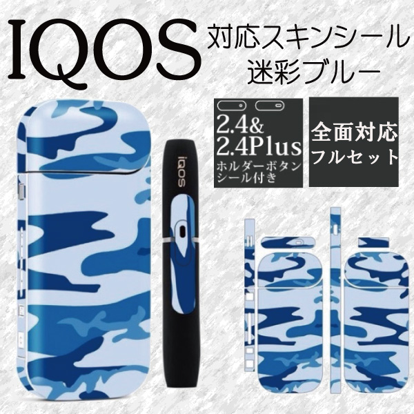 アイコス 対応 専用スキンシール 両面 側面 全面 ステッカー iqos対応 迷彩 ライトブルー