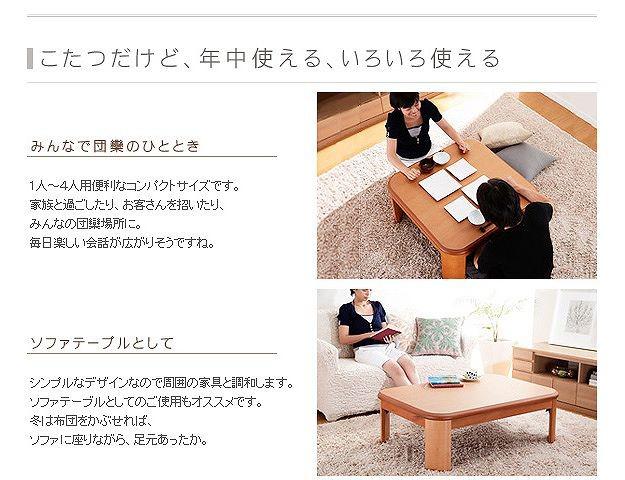角が丸く優しさあふれるシンプルなデザイン。こたつもテーブルもこれ1台でOK♪使わないときは折畳んですき間へ収納(厚さ15cm)。便利な継ぎ脚付(高さ5cm)。600W薄型石英管ヒーター(手元コントローラー式)。