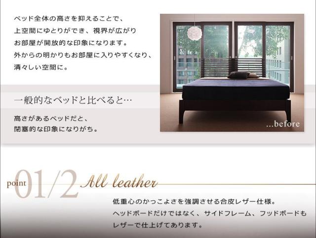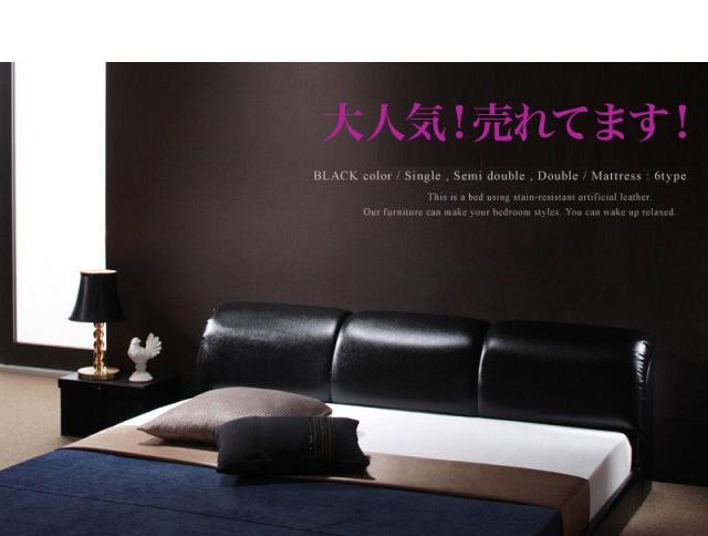 ベッド セミダブル ローベッド ロータイプ 低い フロアベッド 低床 フレーム ヘッドレスト 読書 ゲーム 背もたれ クッション 寄りかかる おしゃれ 高級 デザイナーズ モダン レザー PボンネルCマットレス付き