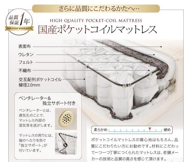 【ポケットコイルマットレス:ハード付き】 SD ブラック/