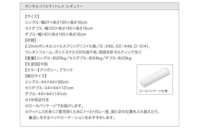 【ボンネルコイルマットレス:レギュラー付き】 SD ブラック/【マットレス】ブラック
