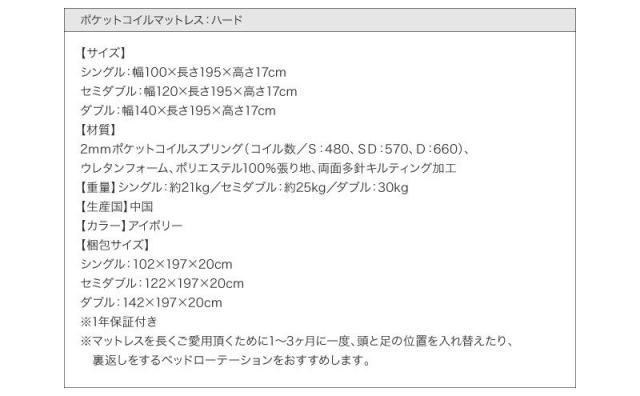 【ポケットコイルマットレス:ハード付き】 S ブラック/
