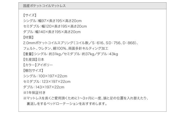 【ポケットコイルマットレス:レギュラー付き】 SD ブラック/【マットレス】アイボリー