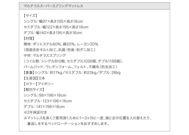 【マルチラススーパースプリングマットレス付き】 SD ブラック/