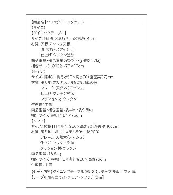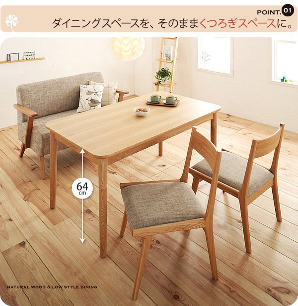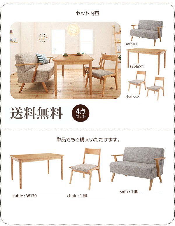 ソファダイニングセット ナチュラル4点セット/