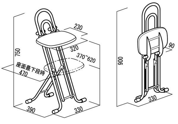 商品サイズ:幅330×奥行き390×高さ750×座面高さ370〜620mm