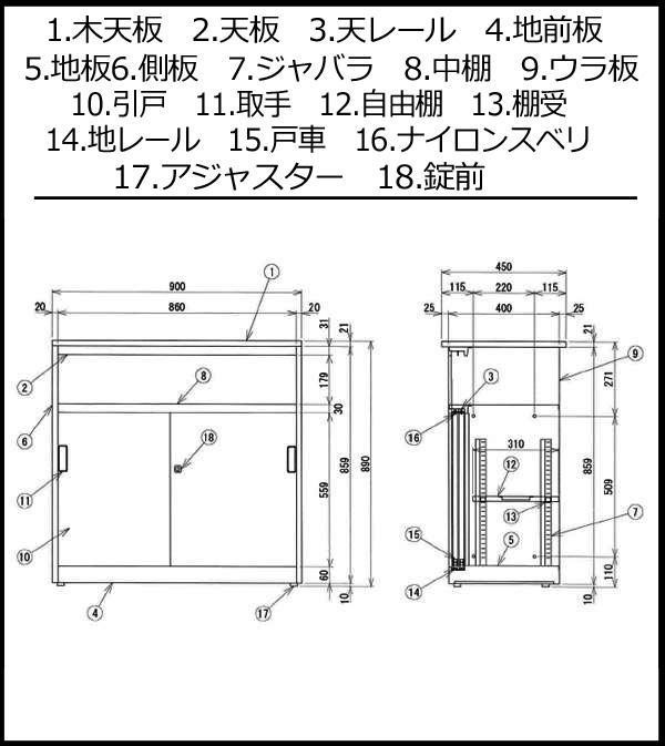 【外寸】W900×奥行き450×高さ890mm