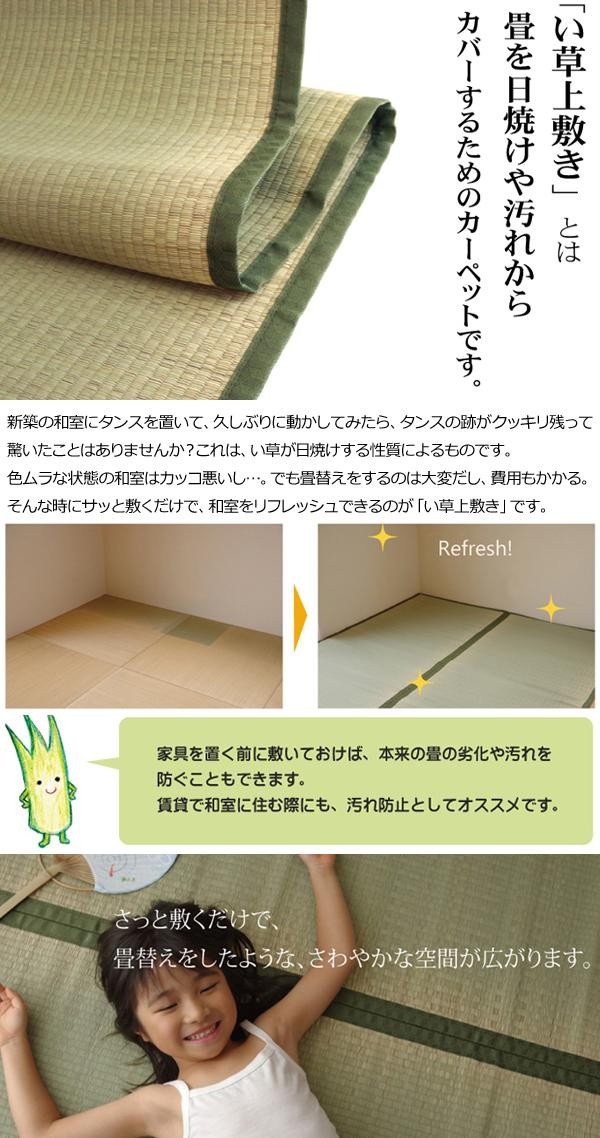 上敷きを敷くだけで畳のお部屋をリフレッシュ出来ます♪日焼けしてしまった畳のリフレッシュに、新品の畳を汚さないためのカバーにご使用下さい。