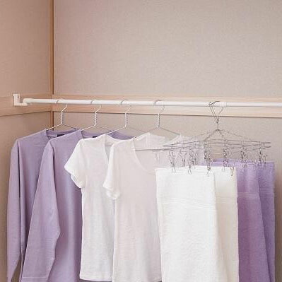 また角度が自由に変えられるので、コーナーに取付もOK!!ポールの取り外しが可能なので、使わない時はポールだけしまっておけばお部屋もスッキリします。