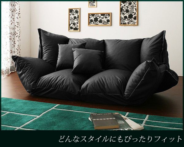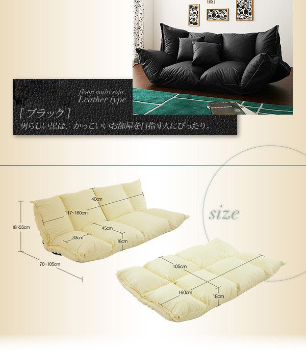 ソファー ソファ 2人掛け 二人掛け 2人用 二人用 おしゃれ 北欧 リビング ソファーベッド ソファベッド 一人暮らし カウチソファー 座椅子 ローソファ リクライニング レザー 革 合皮 ( フロアソファ レザー ブラック 黒 )