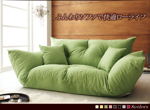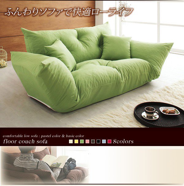 ソファー ソファ 2人掛け 二人掛け 2人用 二人用 おしゃれ 布 ファブリック 北欧 リビング ソファーベッド ソファベッド 一人暮らし カウチソファー 座椅子 ローソファ リクライニング ハイバック ( フロアカウチ グリーン 緑 )
