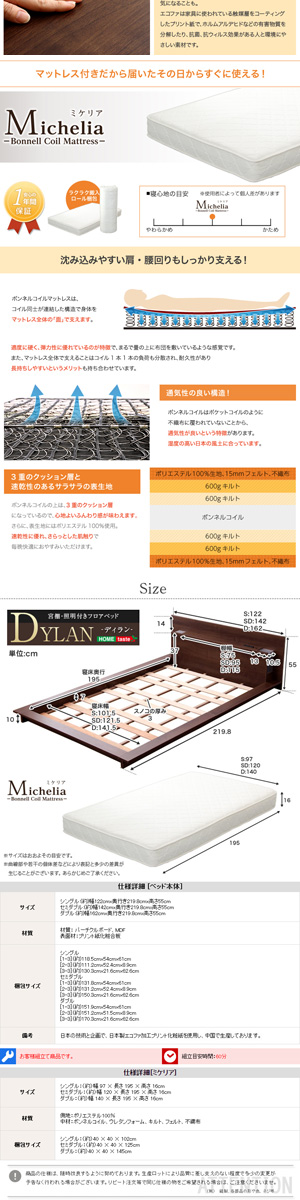 (マットレス)側地:ポリエステル100%中材:ボンネルコイル、ウレタンフォーム、キルト、フェルト、不織布