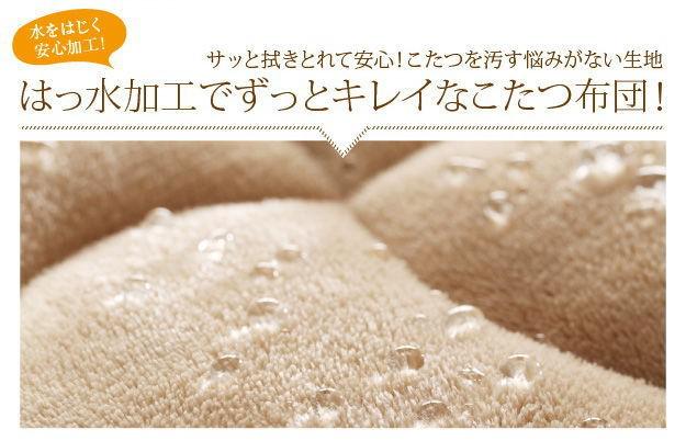ダイニングこたつ(ハイタイプ)用のこたつ掛け布団。表面はふわふわ気持ちの良い肌触りのフランネル生地に汚れをはじく撥水加工を施しました。裏面は暖かなフリース素材。表裏両面使えるリバーシブル仕様です。洗濯機で丸洗いできるので、いつも清潔。お子さまやペットのいるご家庭にもおススメです。