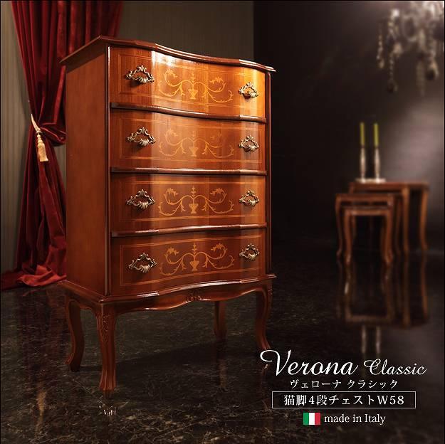 タンス チェスト 猫脚 4段 幅58cm イタリア ヨーロピアン アンティーク風