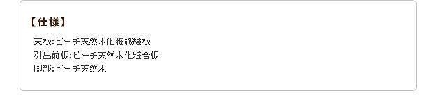 材質:天板-天然木化粧繊維板(ビーチ)、引出前板-天然木化粧合板(ビーチ)、脚部-天然木(ビーチ)・ラッカー塗装