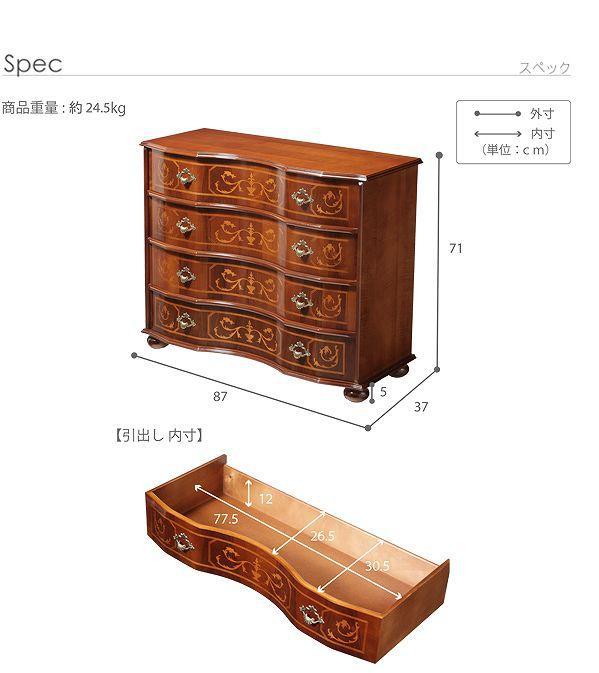 タンス チェスト 丸脚 4段 イタリア ヨーロピアン アンティーク風