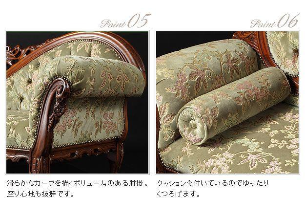 ソファー ソファ 2人掛け 二人掛け 2人用 二人用 高級 おしゃれ リビング アンティーク 布 ファブリック 肘付き グリーン 緑