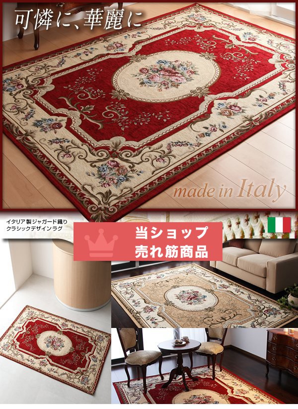 ラグ カーペット じゅうたん ラグマット イタリア ペルシャ風 マット 140×190 レッド 赤 おしゃれ 厚手 ふかふか モダン かっこいい
